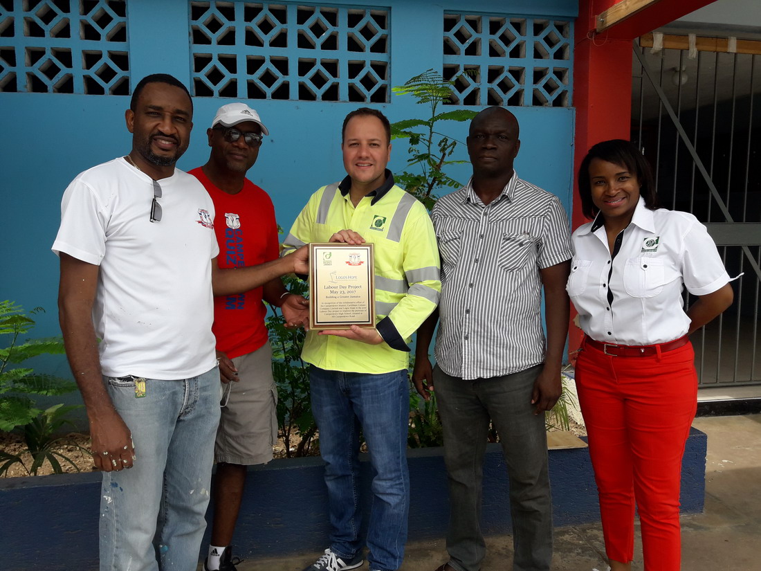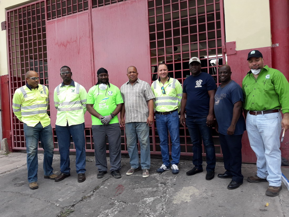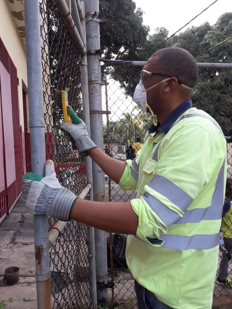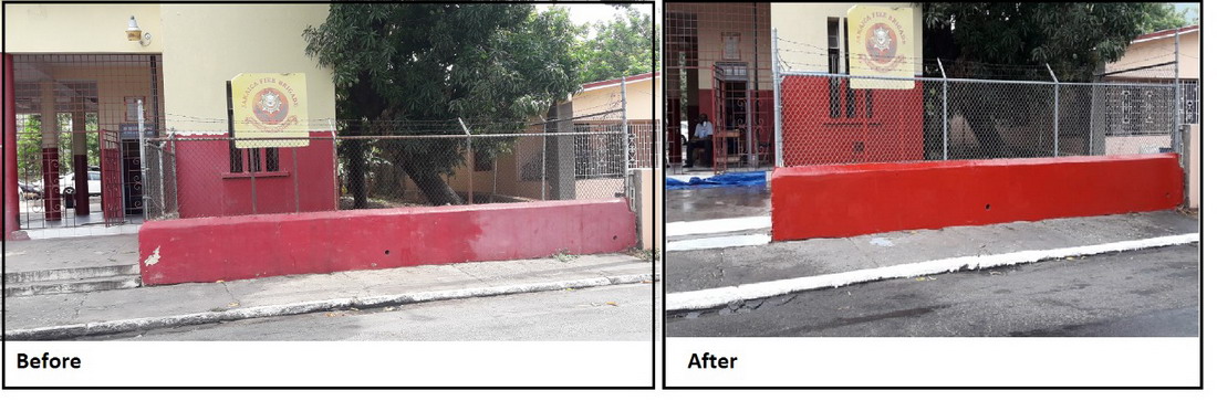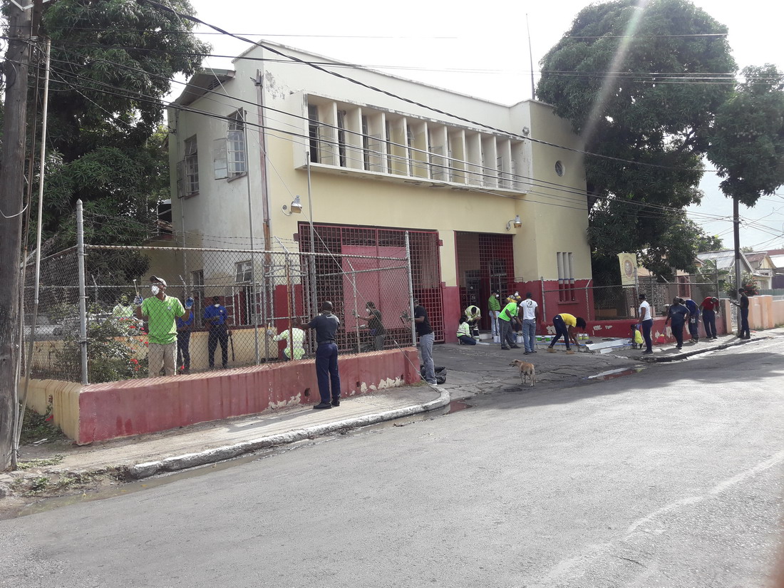 A team of volunteers from the Caribbean Cement Company Ltd worked along with staff of the Rollington Town Fire station to give the front of the premises a facelift. This was the first of two phases of a special project to be completed at the station this year. The Rollington Town Fire station serves the community in which the company’s Rockfort plant is located. While the team was working in Kingston, another team, led by Cemex Jamaica was effecting repairs to the Angle Fame Basic School in Clarendon. These projects were part of the company’s Labour Day programme which included donations of almost 3000 bags of cement to more than 50 projects across 11 parishes. Peter Donkersloot, General Manager at Carib Cement participated in the painting at Rockfort and also visited other project sites. At the Camperdown High School in East Kingston he joined in the placement of a plaque to commemorate Carib Cement’s donation of a wall to the school on Labour Day 2017. He later visited the project at the NWC Basic School in Papine where project manager, Paulton Gordon, Director of Community Relations at the University of Technology, showed him how Carib Cement’s donation was being used to create a sidewalk which will provide safer access to the school for both the students and their parents. Klao Bell-Lewis, Community Outreach Manager attended the National Labour Day Project at the Papine High School.